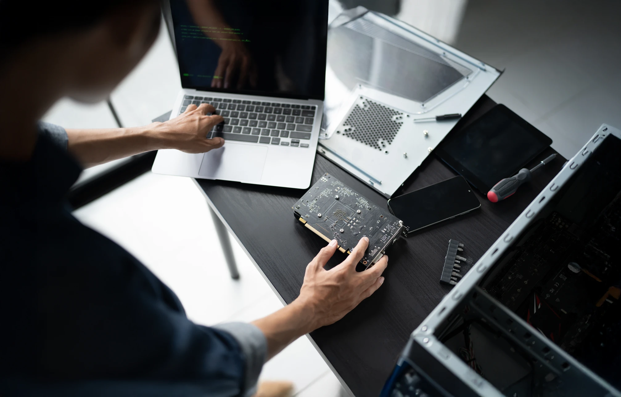 Nous intervenons sur tous les types d'ordinateurs : PC fixes, portables, Mac, stations de travail et serveurs. Notre savoir-faire couvre l'ensemble des marques disponibles sur le marché (Dell, HP, Lenovo, Asus, MSI, Apple...) ainsi que tous les systèmes d'exploitation courants. La remise en état des configurations sur mesure et gaming est également assurée, indépendamment de leur complexité technique.